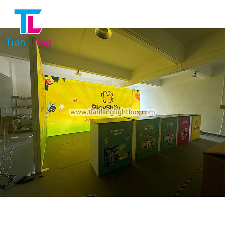 กล่องไฟ LED สำหรับแสดงนิทรรศการปรับแต่งได้กล่องไฟไร้กรอบสำหรับผ้า backlit กราฟิกสำหรับโปรโมชั่นการขายและการตลาด