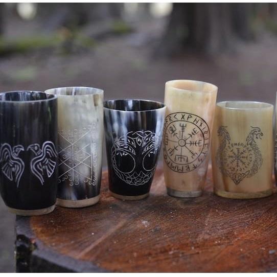 แก้วลายหมีแบบวินเทจทำมือรูปเขาสัตว์แกะสลักแบบสั้นทำด้วยมือทำจากธรรมชาติสไตล์สัตว์โบราณออกแบบได้ตามที่ต้องการ