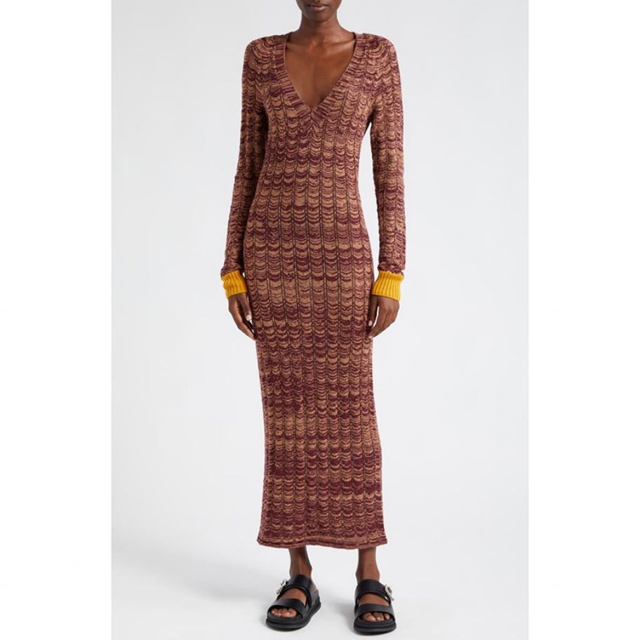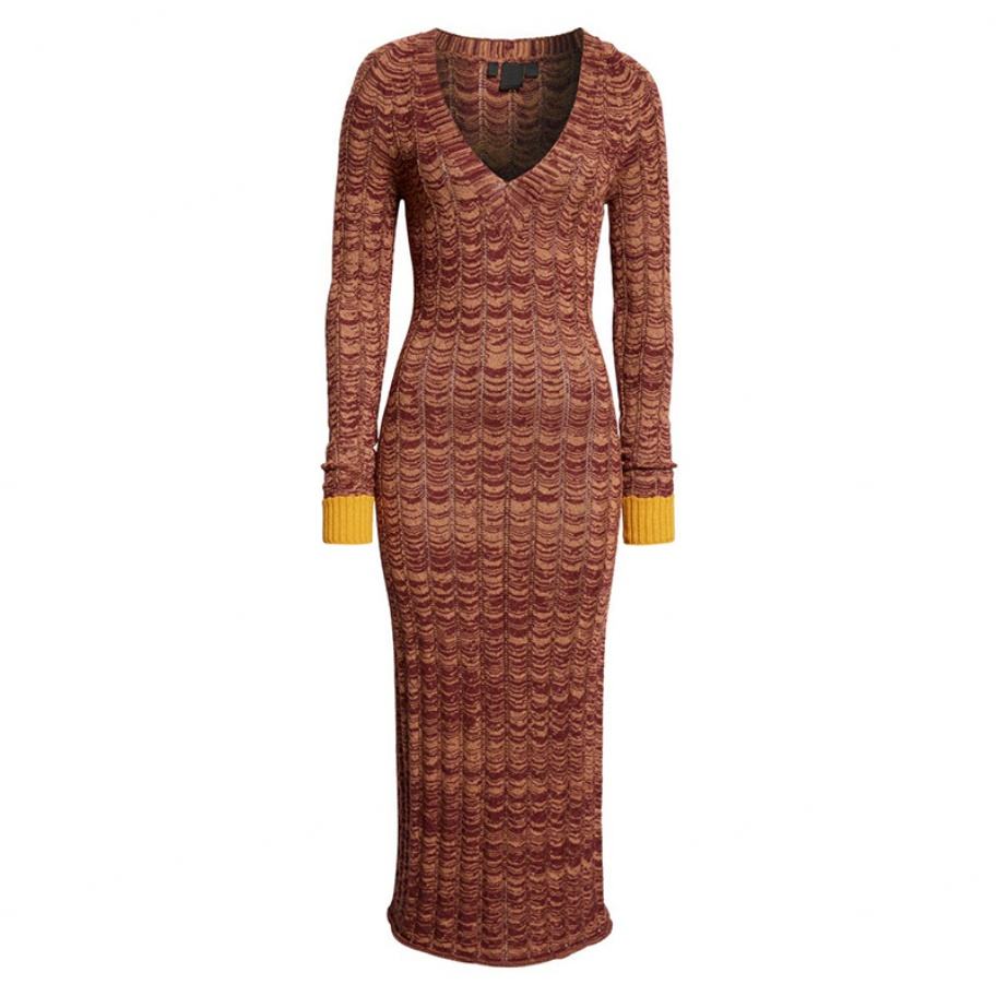 ชุดเดรสสเวตเตอร์แขนยาวผ้าพิมพ์ลายโลโก้ตามสั่ง คอลเลคชั่นฤดูใบไม้ร่วง/ฤดูหนาว