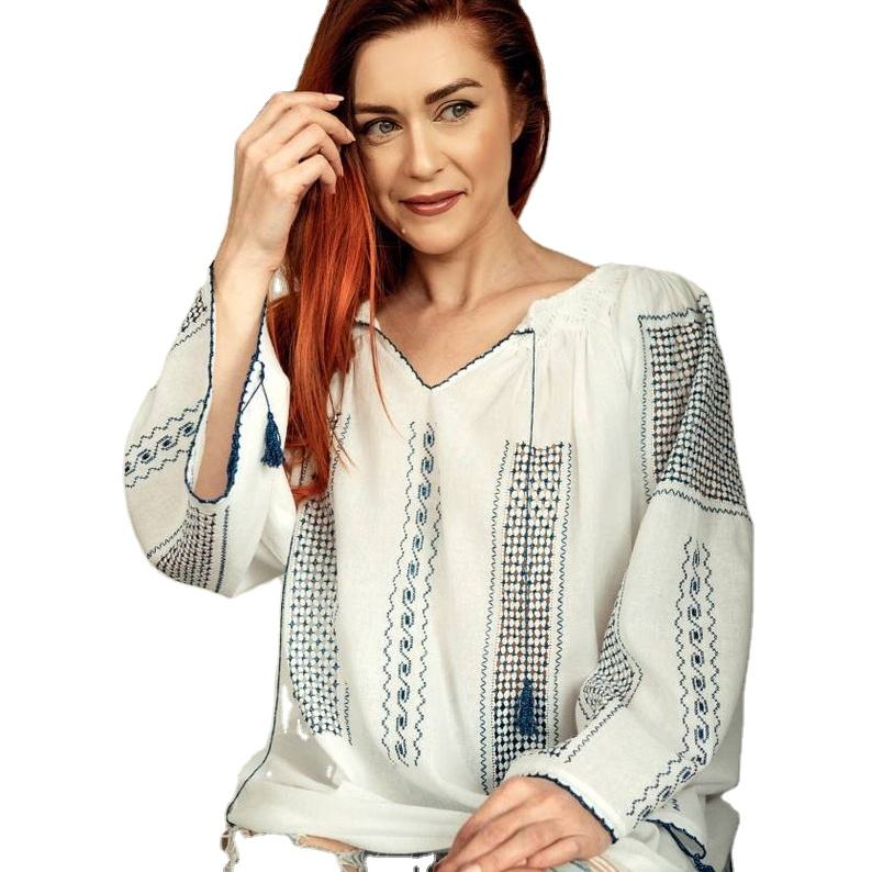เสื้อคอวีแขนยาวสำหรับผู้หญิง,เสื้อผ้าแฟชั่นทันสมัยปักลายได้ตามต้องการ