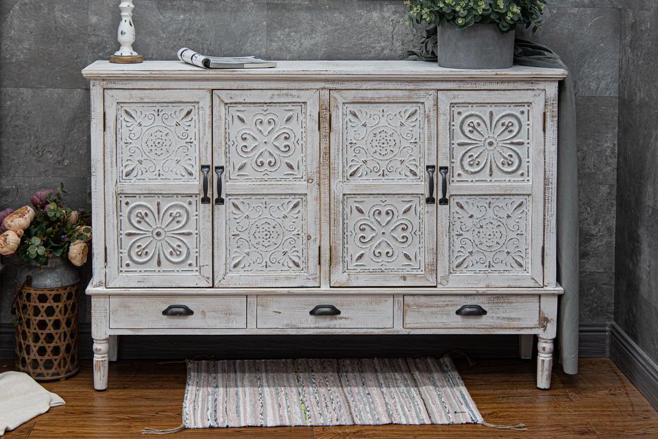 ตู้ข้างเตียงไม้สไตล์ฟาร์มเฮาส์สั่งทำพิเศษ เฟอร์นิเจอร์บ้านสีขาวล้าง ขนาดใหญ่ 3 ลิ้นชัก ไม้เนื้อแข็ง 4 บาน สำหรับห้องนั่งเล่น ทางเข้าบ้าน บาร์บ้าน โรงแรม