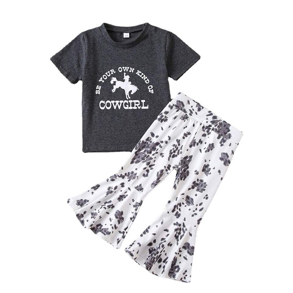 Customized Fashion Baby Girl Lounge Outfit Toddler Kids Bell Bottom Pants Set