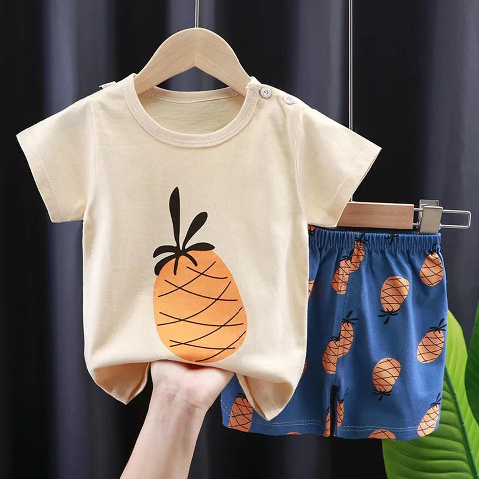 ที่กำหนดเองได้รับการออกแบบแฟชั่นเสื้อยืด2ชิ้นแขนสั้น Clothing100 % ผ้าฝ้ายเด็กเสื้อผ้าชุดขายส่ง