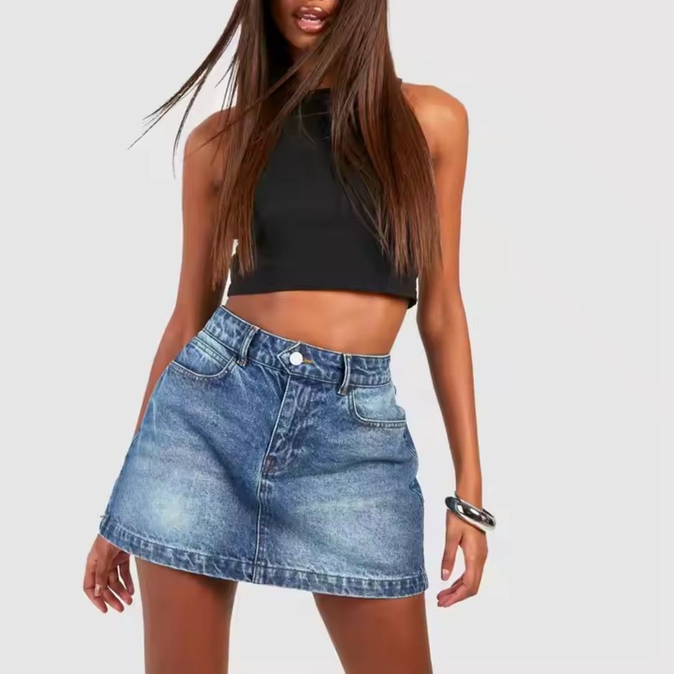 Customized Fashionable Women's Mini Denim Skirt Washed Summer Retro Skirt Women Wholesale
