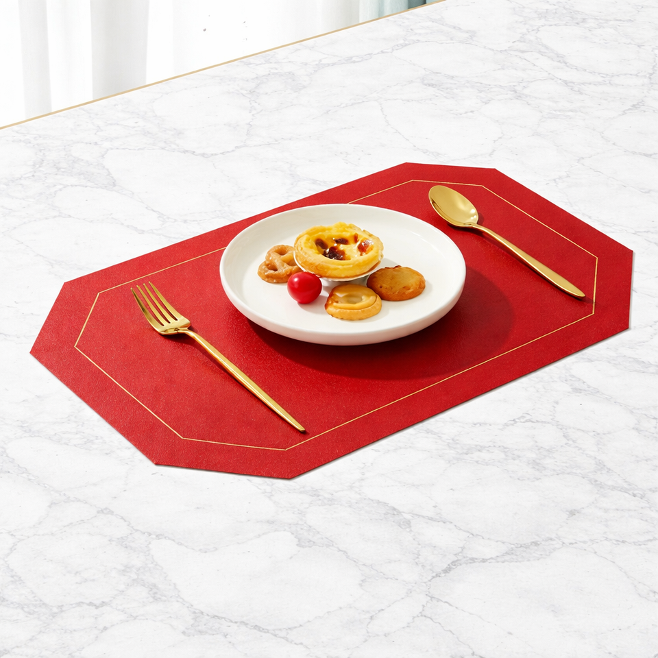 แผ่นรองจานหนัง PU แบบกำหนดเอง เช็ดทำความสะอาดได้ สำหรับงานเทศกาล บ้าน งานเฉลิมฉลอง คุณภาพสูง แผ่นรองโต๊ะกาแฟและโต๊ะอาหารสุดฮิต