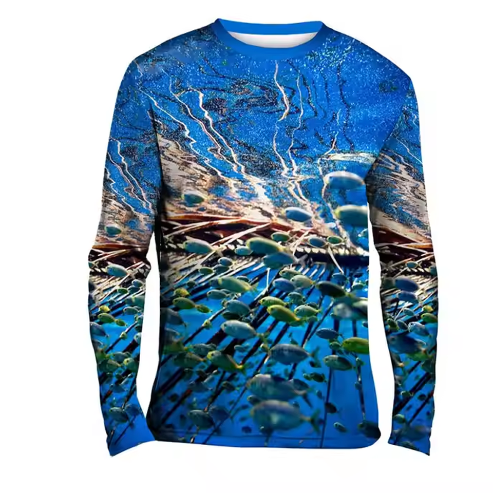เสื้อตกปลาแขนยาวดูดซับความชื้น UV เสื้อกันแดดกันน้ำแห้งเร็วสั่งติดฉลากได้ตามต้องการ