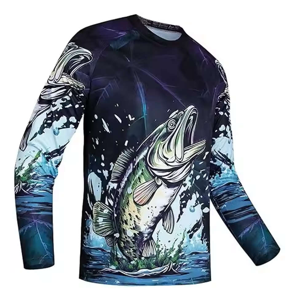 เสื้อตกปลาแขนยาวดูดซับความชื้น UV เสื้อกันแดดกันน้ำแห้งเร็วสั่งติดฉลากได้ตามต้องการ