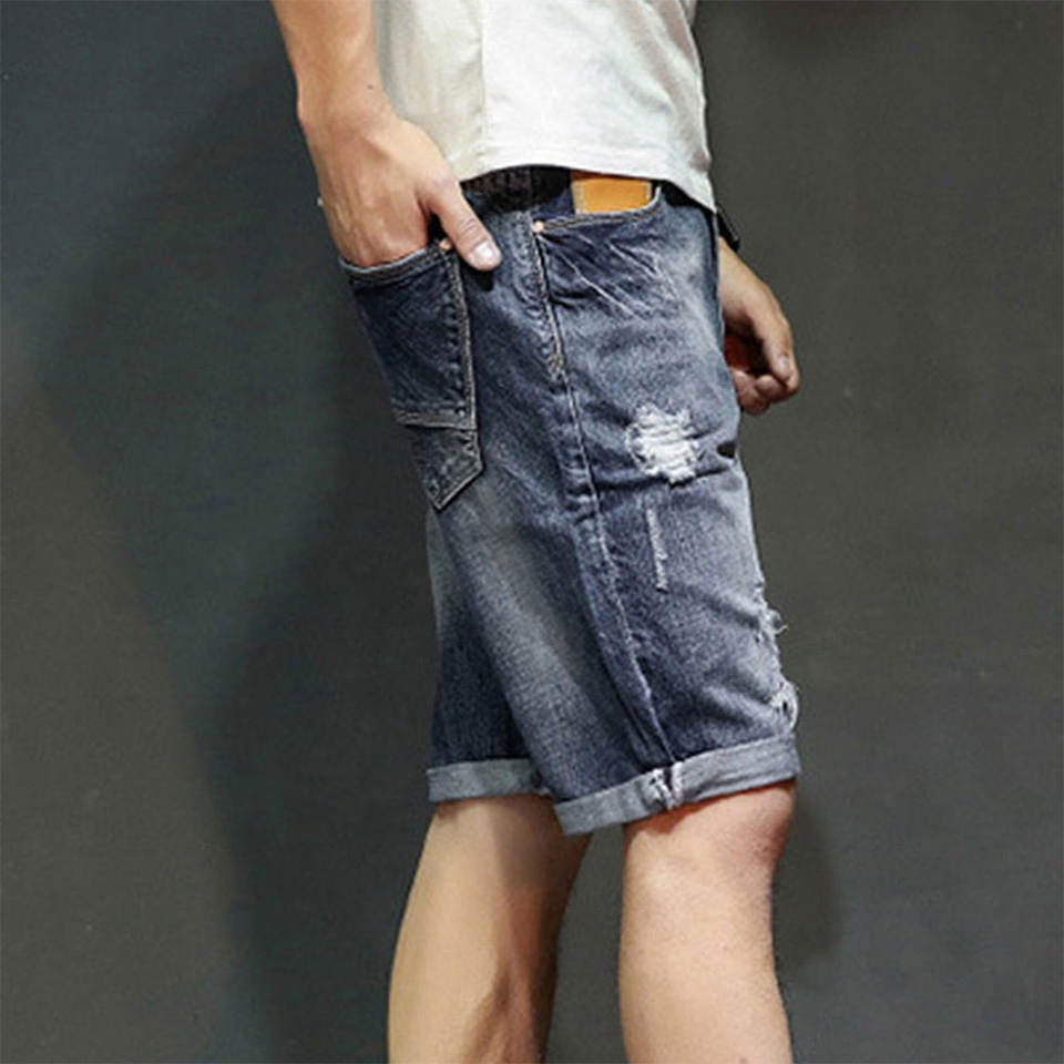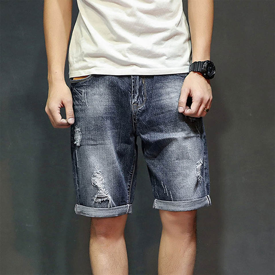 กางเกงยีนส์ขาสั้นผู้ชายทรงหลวมแบบสั่งตัดพิเศษ ซิปหน้า ผ้าฝ้ายเนื้อหนา แห้งเร็ว เอวกลาง สไตล์ลำลอง