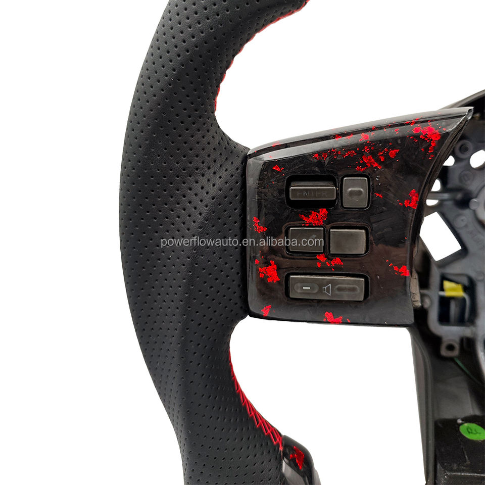 พวงมาลัยคาร์บอนไฟเบอร์แบบฐานแบนออกแบบได้เองสำหรับ Nissan R51 350Z 370Z R35 GTR 370Z Z34 Armada Y62 Infiniti FX35