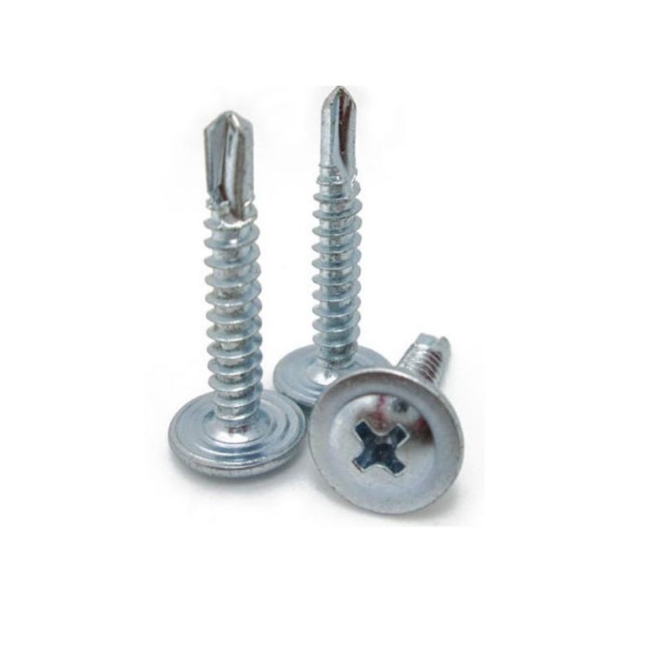 สกรูหัวแบนปรับแต่งได้สลักเกลียวเจาะด้วยตนเองทำจากสังกะสีไดรฟ์หกเหลี่ยมเคลือบเกล็ด