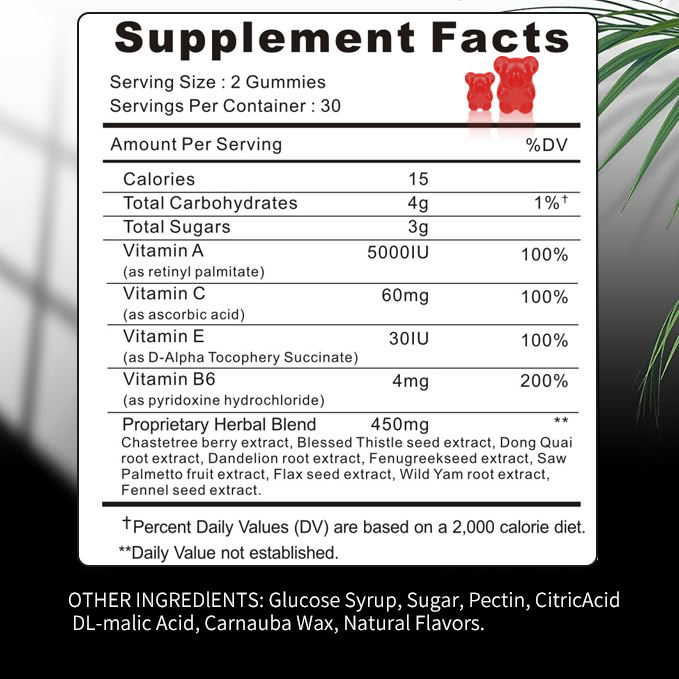 ส่วนผสมหลัก:วิตามินซีอี B6 B12, ไนอาซินและโฟเลต, ไบโอตินและแคลเซียม, การผสมผสานที่เป็นกรรมสิทธิ์