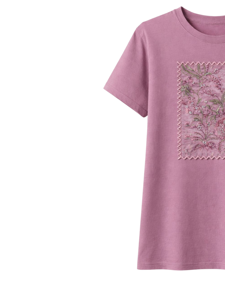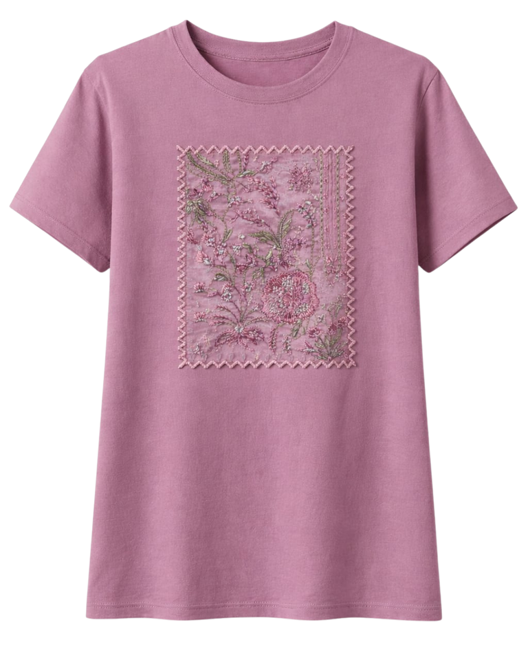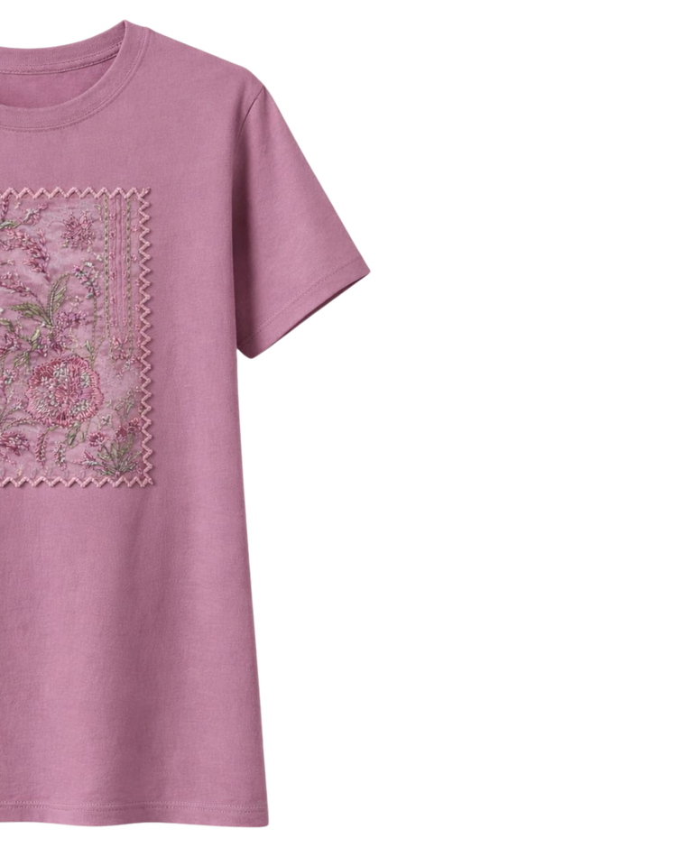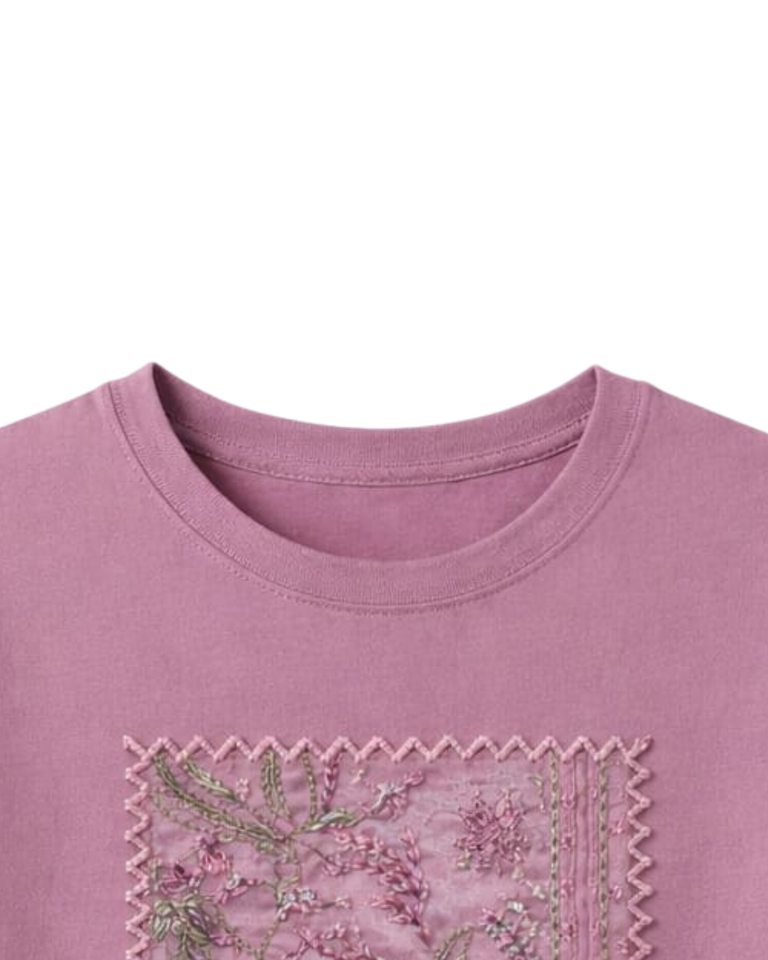 เสื้อยืดผู้หญิงสีชมพูปักลายดอกไม้แบบกำหนดเอง คอตตอน คอกลม แขนสั้น สไตล์ลำลองสำหรับฤดูร้อน รับผลิตตามแบบ พร้อมสกรีนโลโก้ OEM