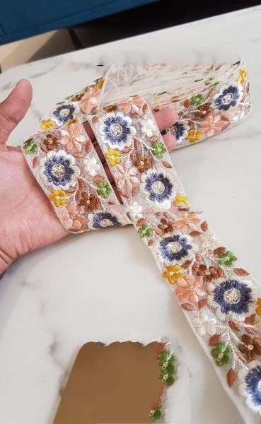 แพรต่วนผ้าโปร่งบางสำหรับงานแต่งงานเครื่องปักลายดอกไม้ออกแบบได้ตามต้องการริบบิ้นผ้าลูกไม้หลากสี