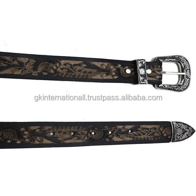 ที่กําหนดเองดอกไม้แกะสลักหนังคาวบอยเข็มขัด cowhide ธรรมชาติผู้ชายแฟชั่นหนังตะวันตกเข็มขัดเครื่องมือและอุปกรณ์เสริม