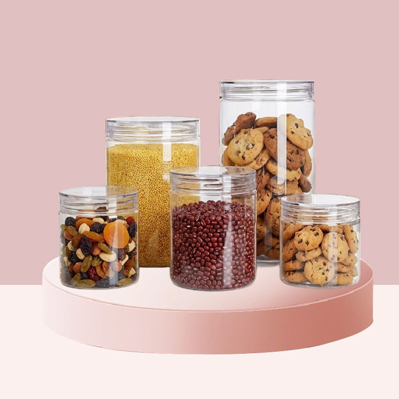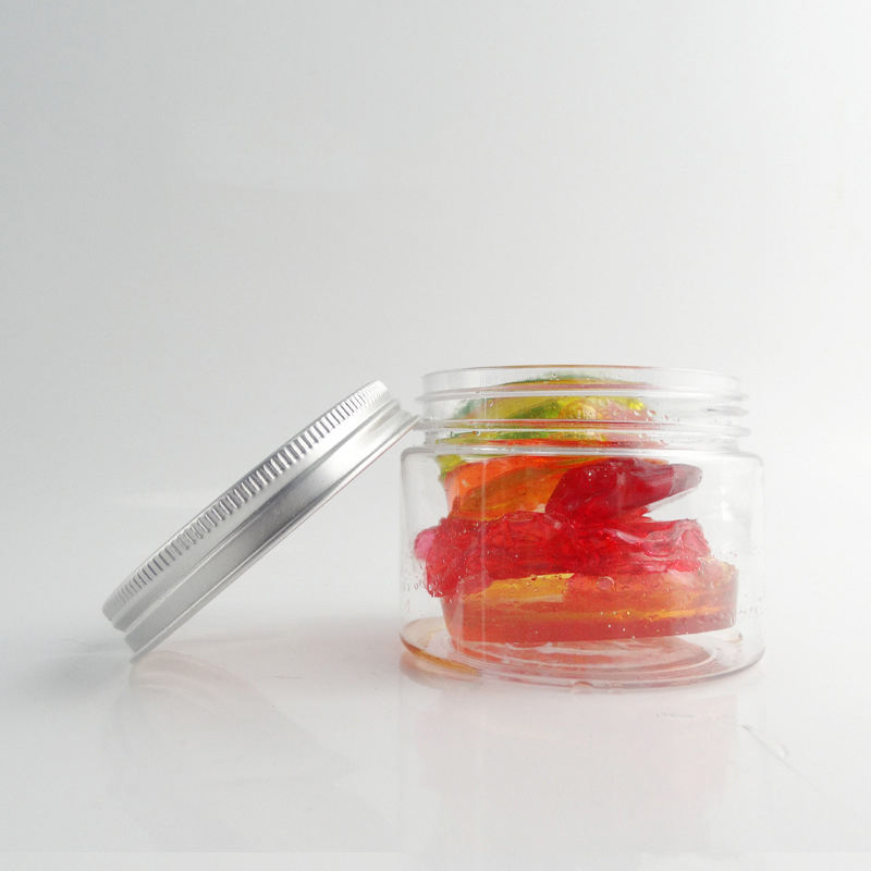 ขวดพลาสติก PET เกรดอาหาร 100% แบบกำหนดเองได้ ฝาเกลียวอะลูมิเนียม สำหรับบรรจุอาหารกระป๋อง ลูกอม พิซซ่า ใส่อาหาร-สีใส สามารถกำหนดเองได้