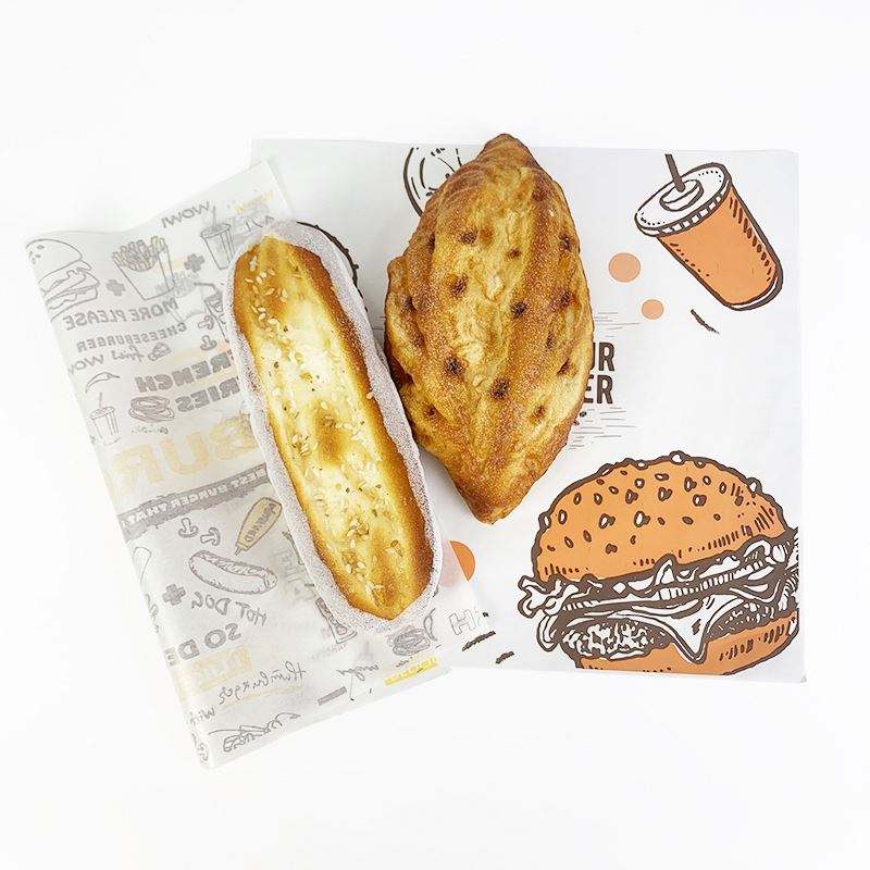กระดาษห่ออาหารเคลือบขี้ผึ้งกันไขมันเกรดอาหารแบบกำหนดเอง พิมพ์โลโก้ตามสั่ง สำหรับพิซซ่า เค้ก น้ำตาล ลูกอม
