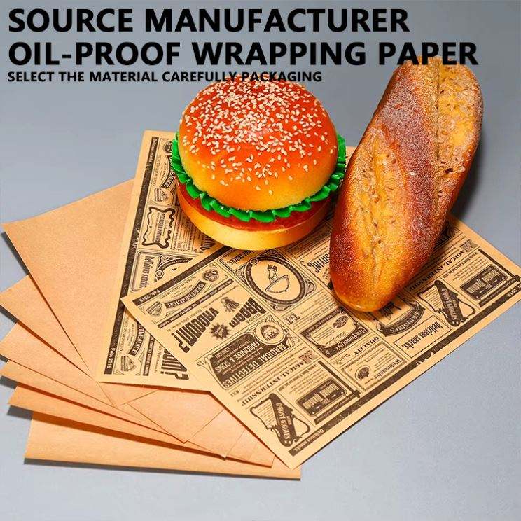 กระดาษห่ออาหารเคลือบ PE เกรดอาหารแบบกำหนดเอง กระดาษห่อขนมปัง คุกกี้ เบอร์เกอร์ แซนวิช แบบด้านเดียว-ขายส่ง