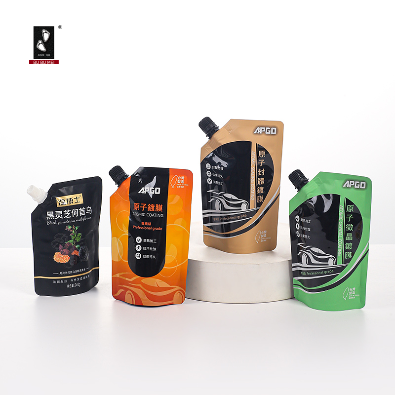 ถุงพลาสติกใส่อาหารแบบตั้งได้พร้อมพวยกาพิมพ์เฟล็กโซ่สำหรับบรรจุของเหลว แบบรีทอร์ท พร้อมโลโก้ตามสั่ง