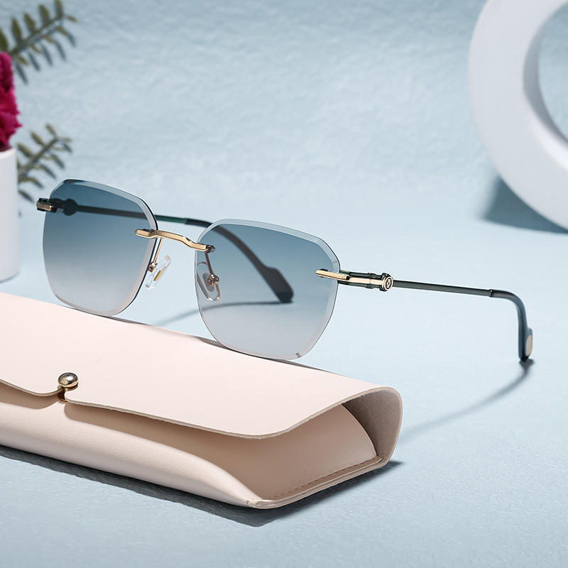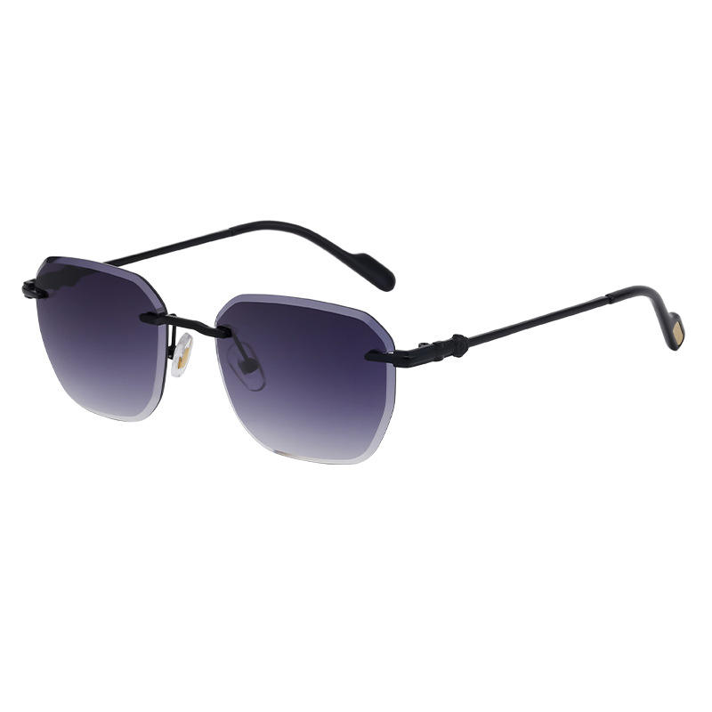 แว่นกันแดดไร้กรอบแบบกำหนดเองสำหรับผู้ชาย เลนส์พีซีสีดำ ป้องกันรังสียูวี 400 น้ำหนักเบา สไตล์อินสตาแกรม ขายส่งข้ามพรมแดน