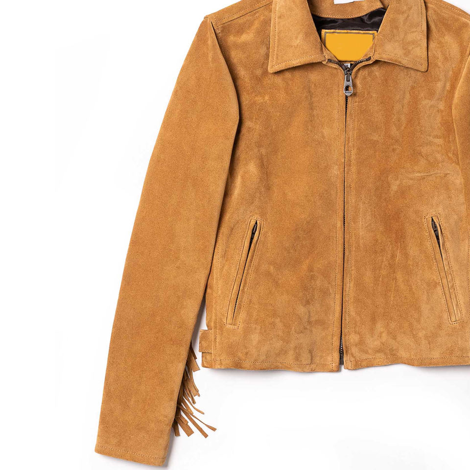 เสื้อแจ็คเก็ตหนังกลับผู้หญิง ประดับพู่