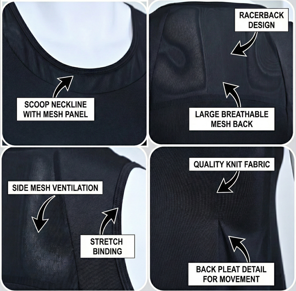 เสื้อกล้ามผู้หญิงแบบสั้น แต่งระบายช่วงคอ ผ้าถักระบายอากาศดี ตกแต่งด้วยเชือกผูกและกระดุม พร้อมโลโก้ด้านหน้าแบบสั่งทำพิเศษ สไตล์หวาน