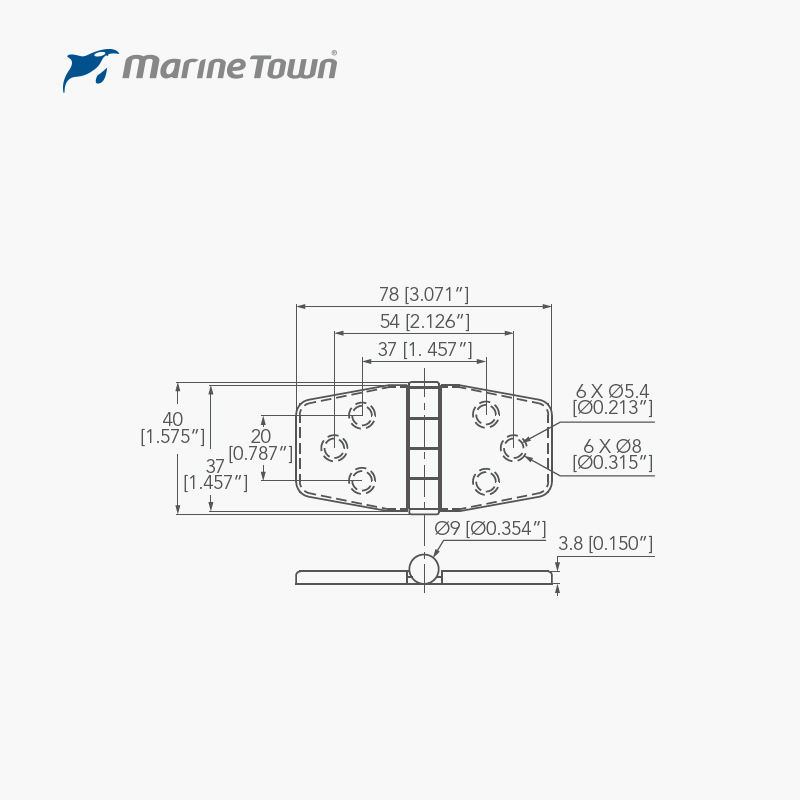 ชื่อผลิตภัณฑ์:บานพับปิด37mm x 78mm บาร์เรลขึ้น