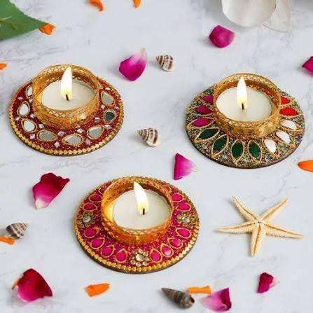 เชิงเทียนดอกบัวเรซิ่นอาร์ตเดคโคหลากสีสำหรับตกแต่งบ้านดิวาลี