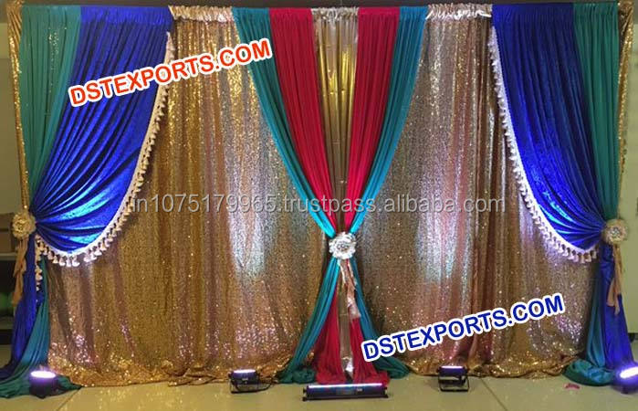 บอลลีวูดฉากเวทีงานแต่งงานแวววาว,ผ้าม่านฉากหลังหลากสีผ้าม่านติดเพดานที่สวยงามสำหรับ Mandap