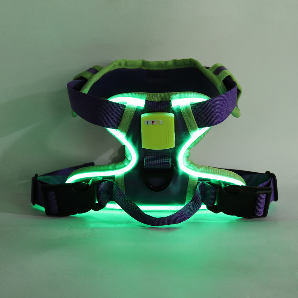 เสื้อกั๊กสายจูงแมวเรืองแสงในที่มืดแบบปรับได้ รูปทรงตัว H สำหรับสุนัขขนาดเล็กและลูกแมว รับผลิตแบบ OEM แบรนด์ส่วนตัว อุปกรณ์สำหรับสัตว์เลี้ยง