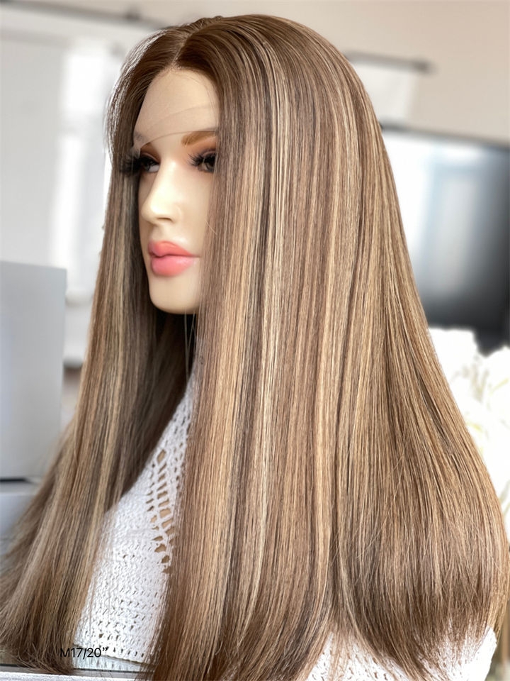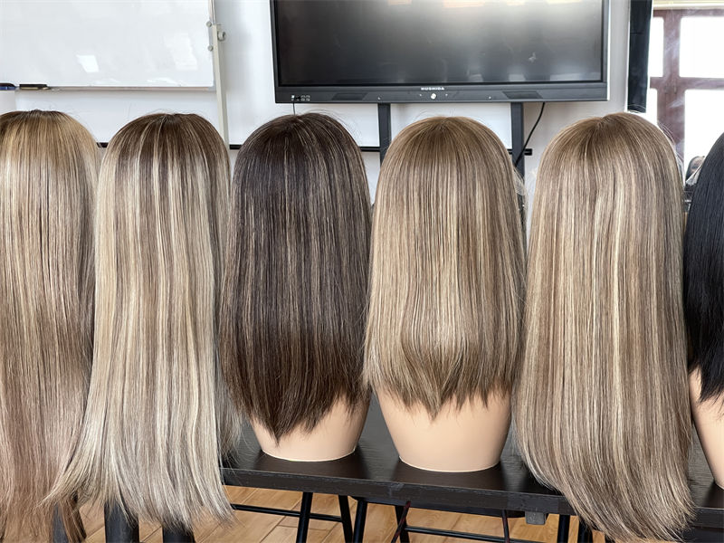 วิกผมแบบชาวยิว100% สูงลูกไม้แบบไม่ใช้กาววิกผมแบบชาวยิวปมเดี่ยว5.0วิกผมแบบลอนติดหนังกำพร้าปรับแต่งได้