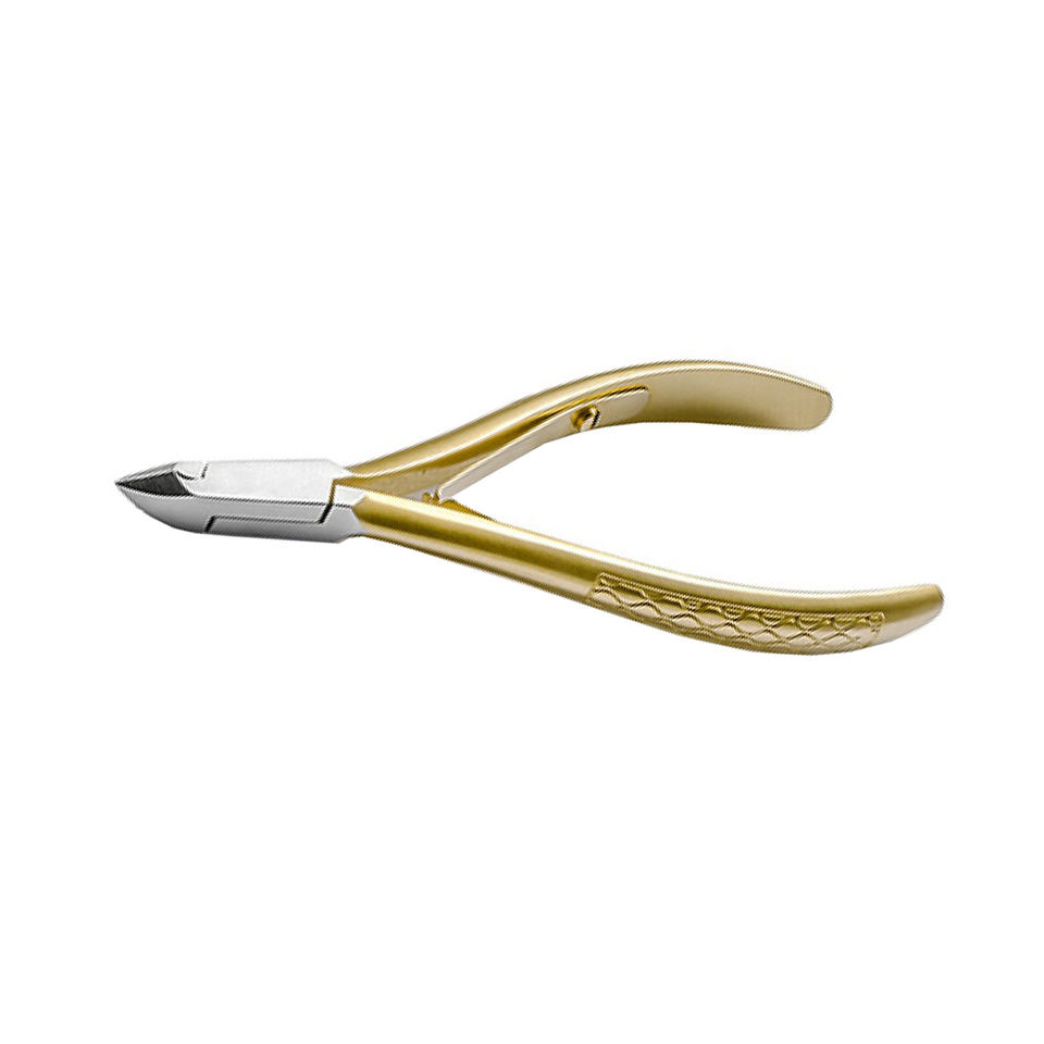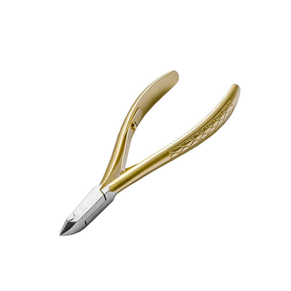 คีมตัดเล็บสเตนเลสสตีลเยอรมันพร้อมด้ามสีทองใบมีดคมสำหรับหนังกำพร้าและนิ้วแบบสปริงสองชั้นออกแบบได้ตามต้องการ