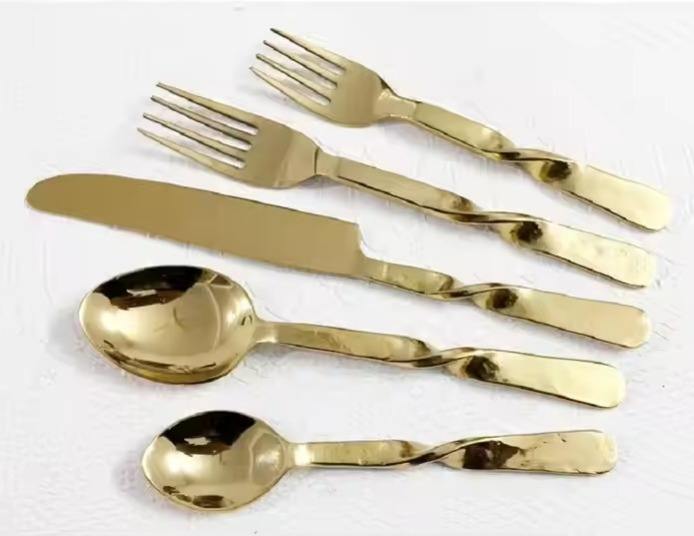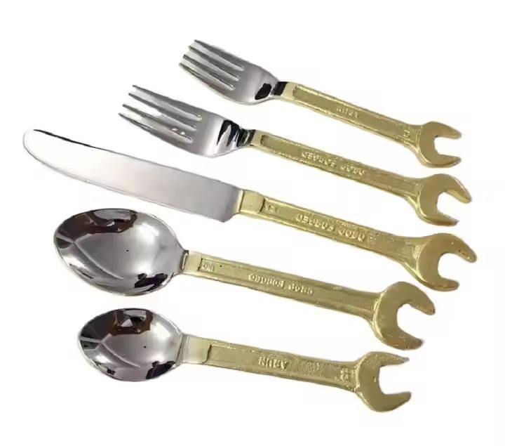 ชุดช้อนส้อมสแตนเลสสีทองพร้อมส้อมมีดอุปกรณ์เสริมด้ามจับโลหะงานปาร์ตี้งานตามสั่ง
