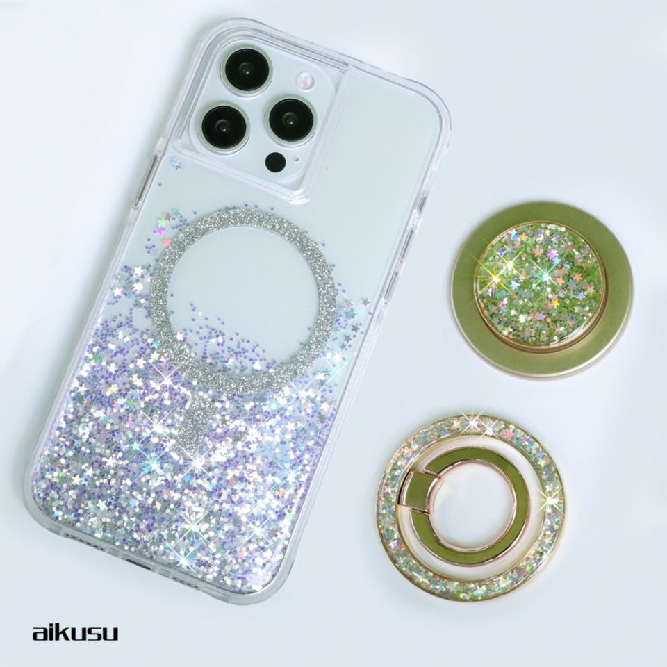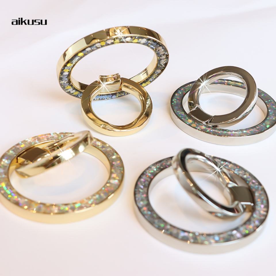 แหวนโทรศัพท์มือถือแบบแม่เหล็กเคลือบทองคำสั่งทำพิเศษ พร้อมกลิตเตอร์ ใช้ได้กับโทรศัพท์ทุกรุ่น ใช้เป็นที่จับและขาตั้งได้ สำหรับ iPhone