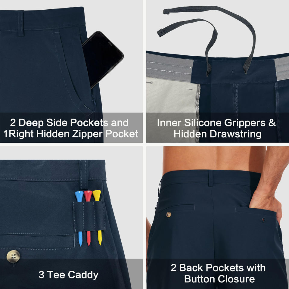 กางเกงกอล์ฟผู้ชายแบบสั่งทำพิเศษ พร้อมบริการสกรีนโลโก้ OEM ระบายอากาศได้ดี ซับเหงื่อ แห้งไว ทรงหลวม สวมใส่สบาย