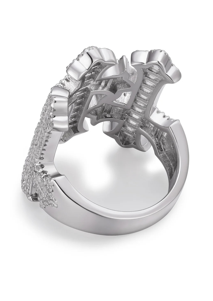 แหวนกอธิคแบบกำหนดเองลายกางเขนสามวง วงแหวนเงินแท้ 925 ประดับเพชรโมอิสซาไนต์ทรงบาแกตต์ สไตล์ฮิปฮอป ชุบทองและโรเดียม