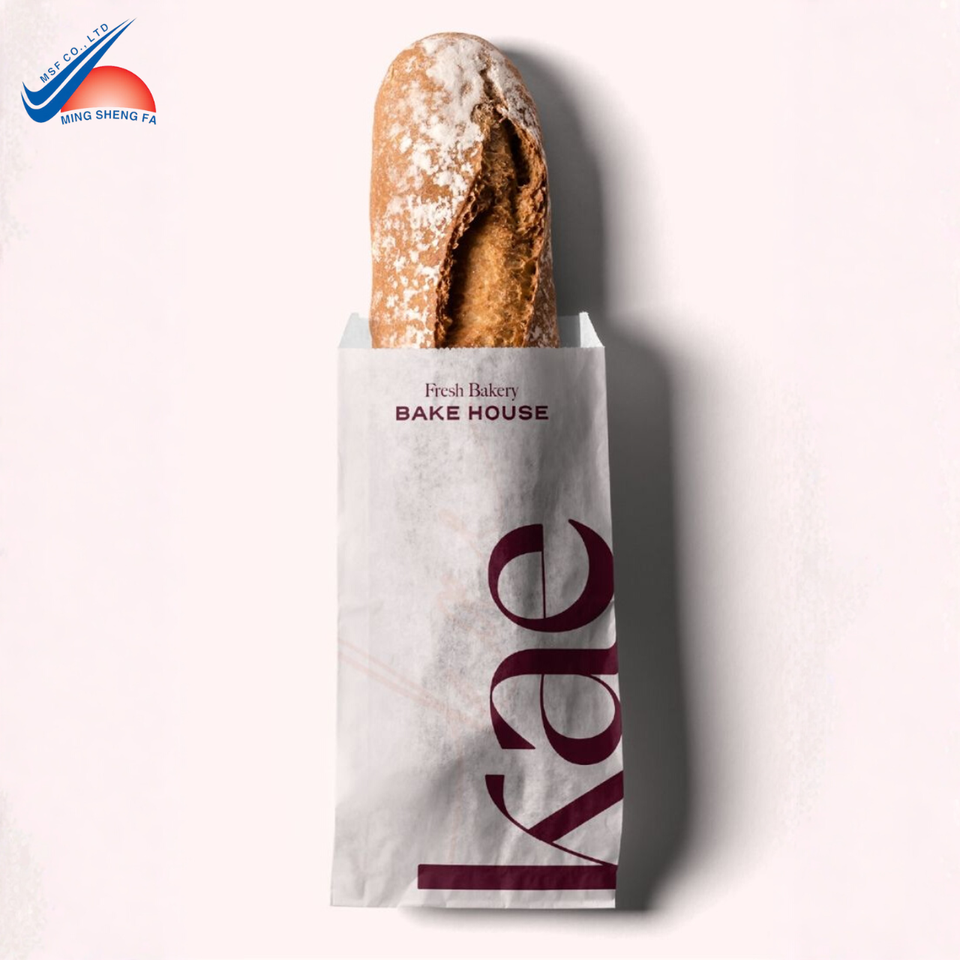 ถุงกระดาษใส่ขนมปังทนน้ำมันออกแบบได้ตามต้องการสำหรับร้านเบเกอรี่ช่างฝีมือ