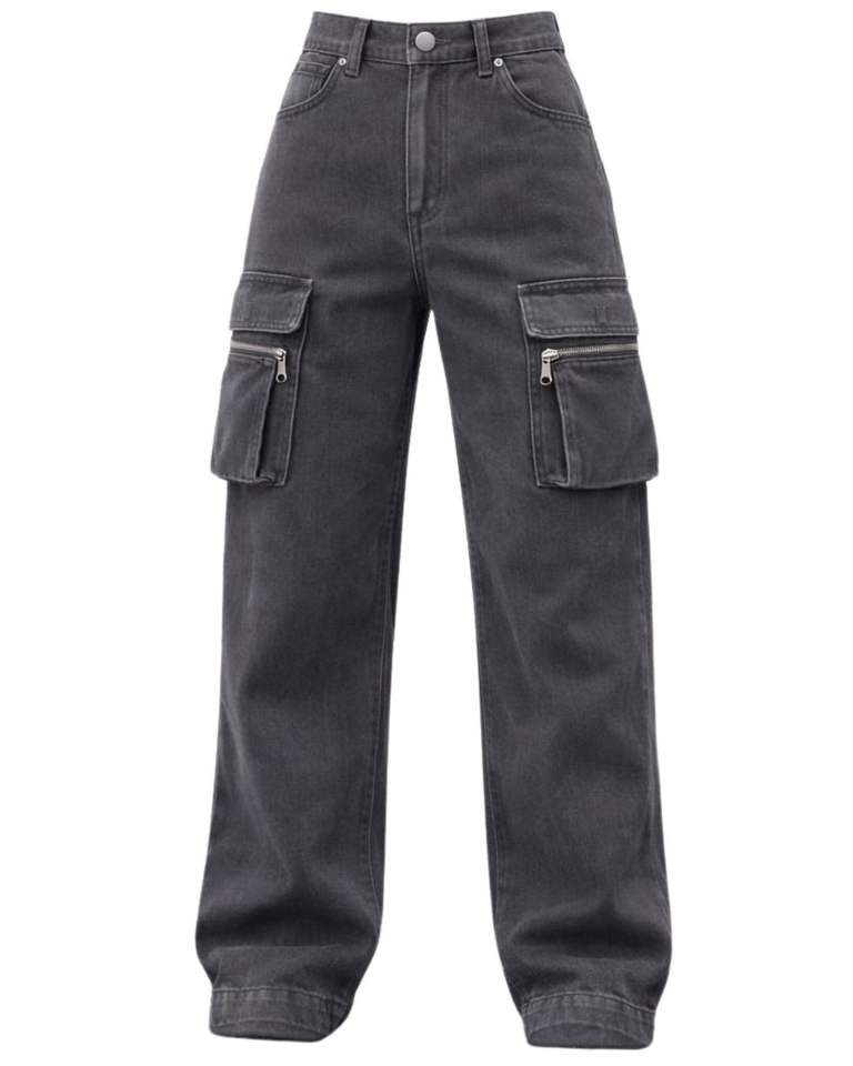 กางเกงยีนส์คาร์โก้เอวสูงสีเทาแบบสั่งทำพิเศษ ทรงขากว้าง มีกระเป๋าซิป สไตล์สตรีทลำลองสำหรับผู้หญิง ทรงหลวม รับผลิตแบบ OEM