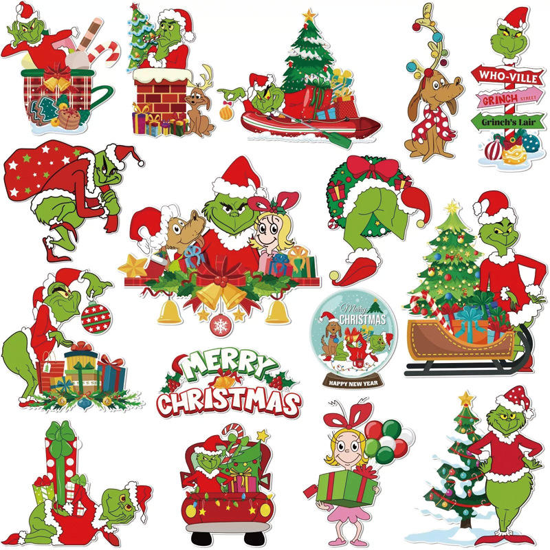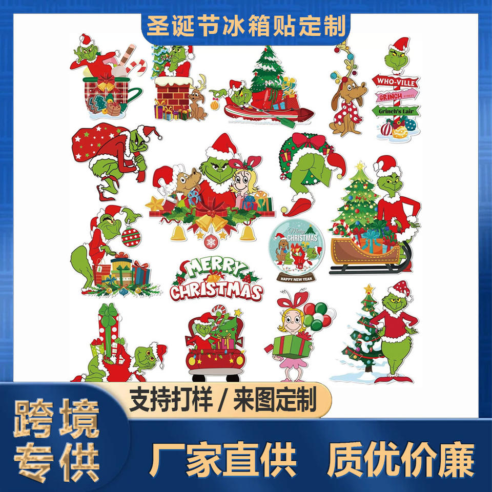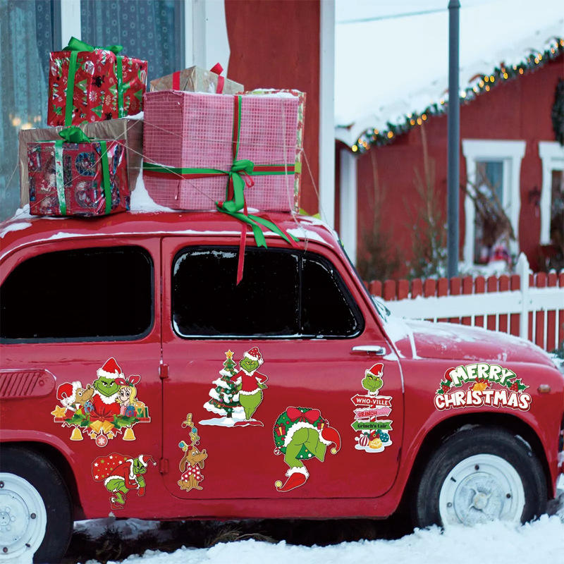 สติกเกอร์ติดรถยนต์ลายกรินช์แบบสะท้อนแสง แม่เหล็กติดตู้เย็น และแม่เหล็กติดรถยนต์ แบบสั่งทำพิเศษ