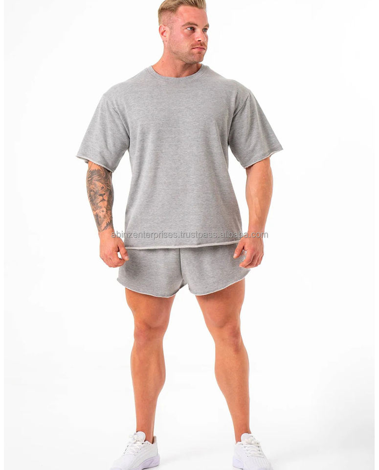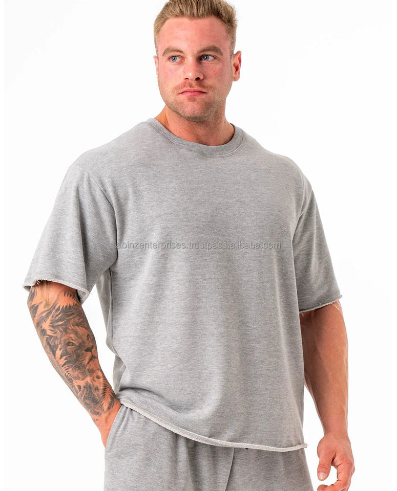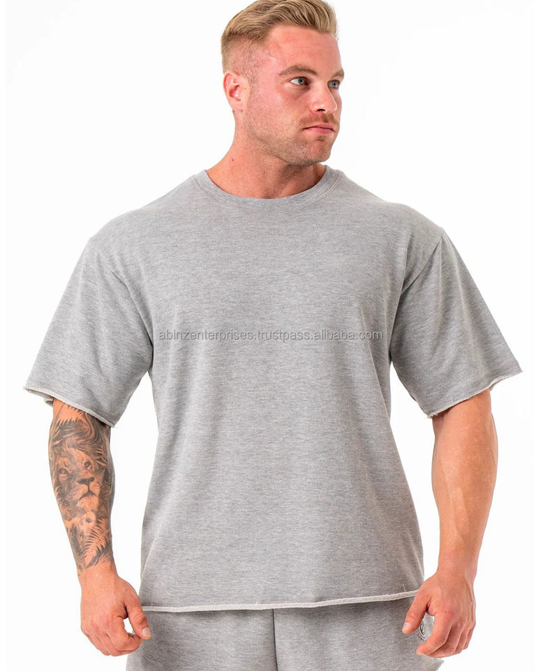 เสื้อยืดโอเวอร์ไซส์สำหรับคนออกกำลังกายผ้าฝ้ายเทอร์รี่