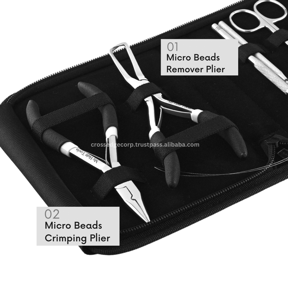 ชุดเครื่องมือต่อผมแบบกําหนดเองประกอบด้วยเครื่องมือแยกนิ้วและห่วงผมพร้อมคีมถอดลูกปัดแบบไมโครคุณภาพดีที่สุด
