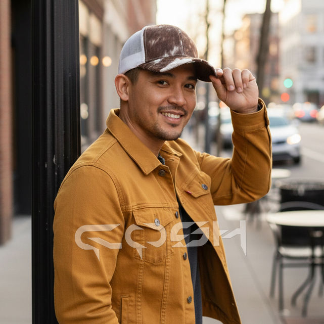 หมวกแก๊ปหนังแท้ลายขนวัว
