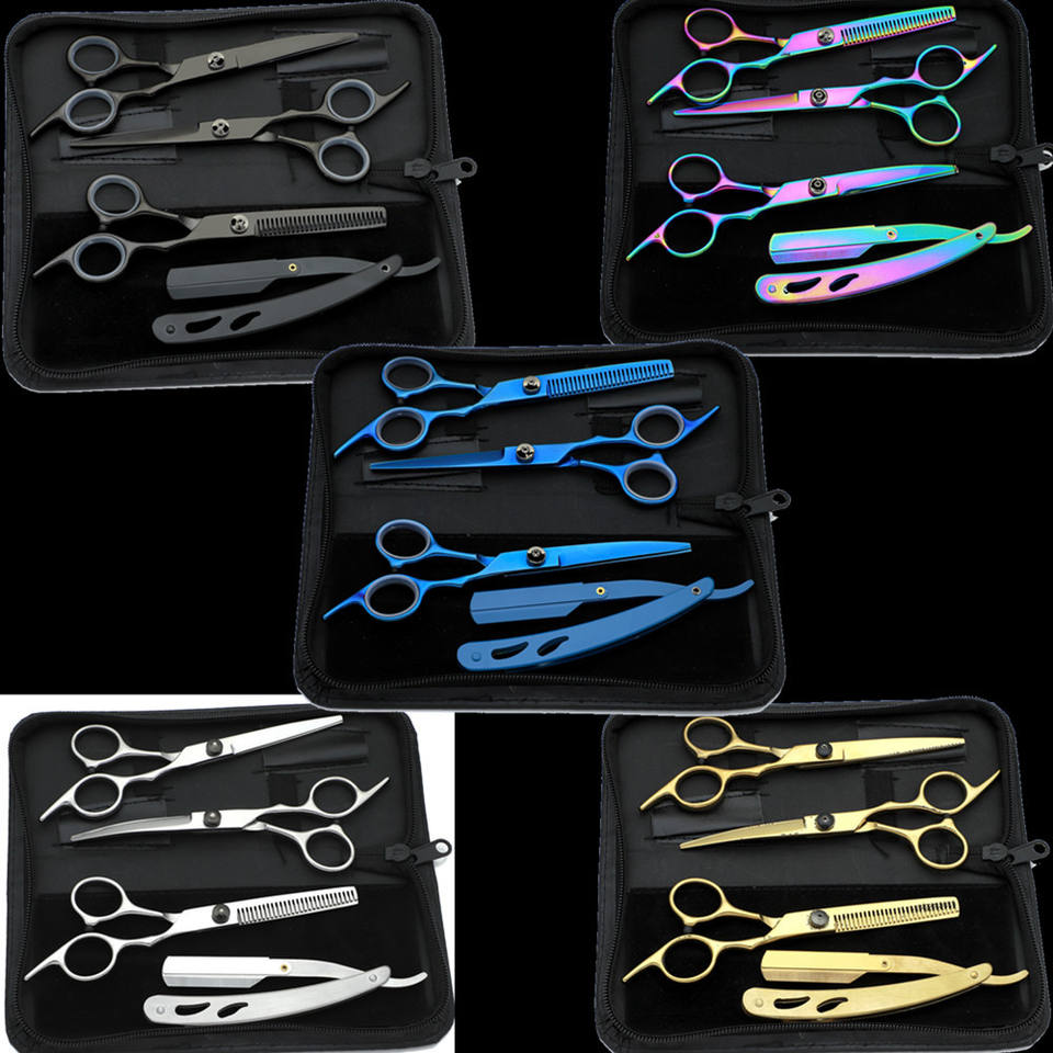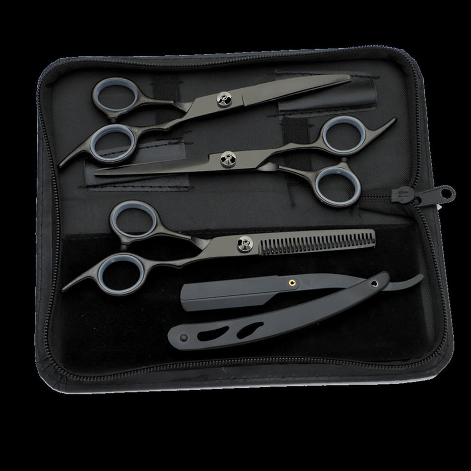 ชุดอุปกรณ์จัดแต่งทรงผมแบบกำหนดเอง ชุดกรรไกรโลหะทนทาน กรรไกรซอยผม กรรไกรตัดผมตรง ที่ขูดผม สีดำ ชุดระดับมืออาชีพคุณภาพสูง