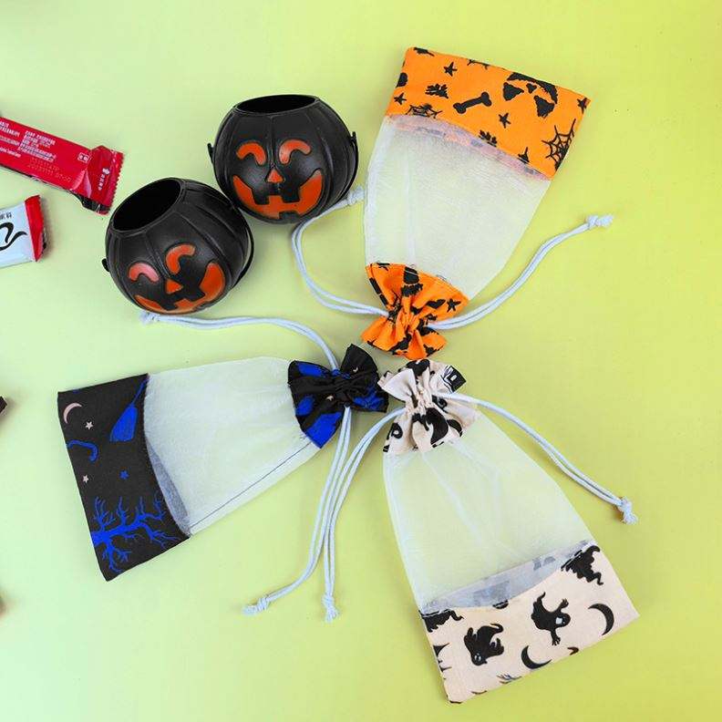 ถุงผ้าออร์แกนซ่าสำหรับใส่ขนมฮาโลวีนแบบกำหนดเอง พร้อมเชือกผูก สำหรับใส่ขนมหวาน ถุงส่วนตัวสำหรับขนมของคุณทุกชนิด
