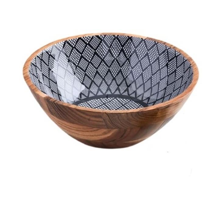 ชามผลไม้ทำจากไม้สำหรับตกแต่งโต๊ะในโรงแรมชามสลัดอาหารเสิร์ฟอาหารแบบโค้งสำหรับตกแต่งด้วยมือ