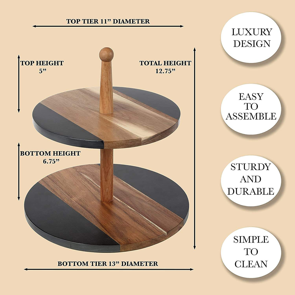 ถาดวางเค้กไม้กระถินณรงค์ทำมือแบบสั่งทำพิเศษสไตล์บ้านไร่และถาดโชว์งานแต่งงานแบบเรียบง่ายพร้อมการตกแต่งที่เป็นมิตรกับสิ่งแวดล้อมสำหรับของว่าง