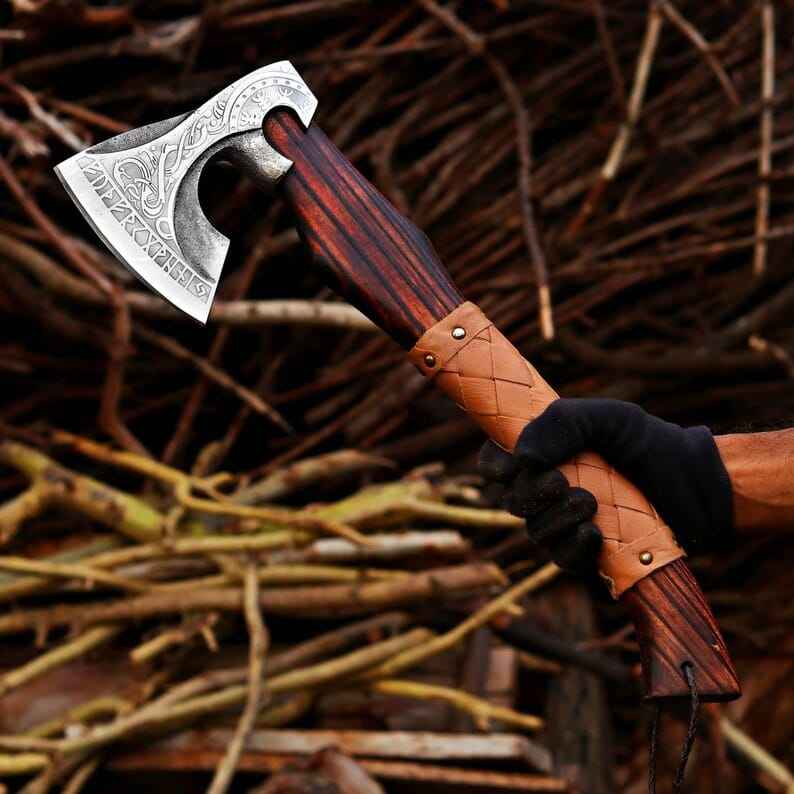 ขวานไวกิ้งแบบดั้งเดิม ผลิตด้วยมือ คุณภาพสูง เกรดอุตสาหกรรม เหล็กกล้าคาร์บอนสูง แบบทอมฮอว์ก รับผลิตตามสั่ง (OEM)