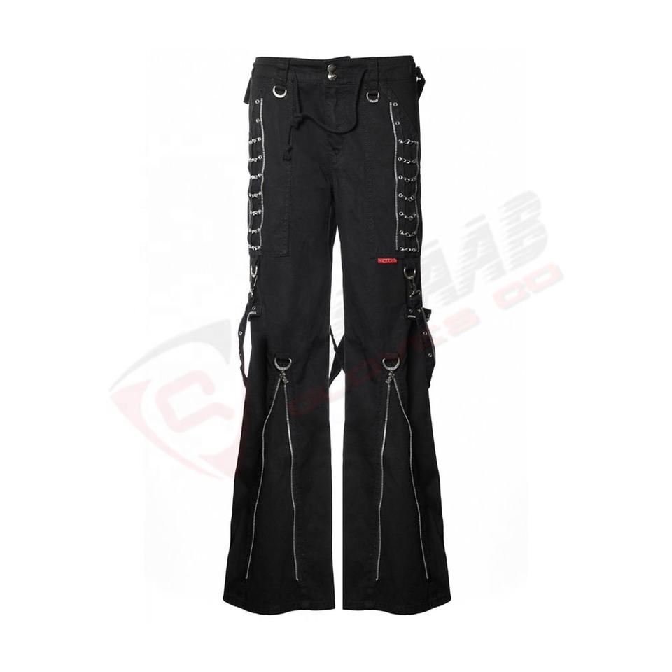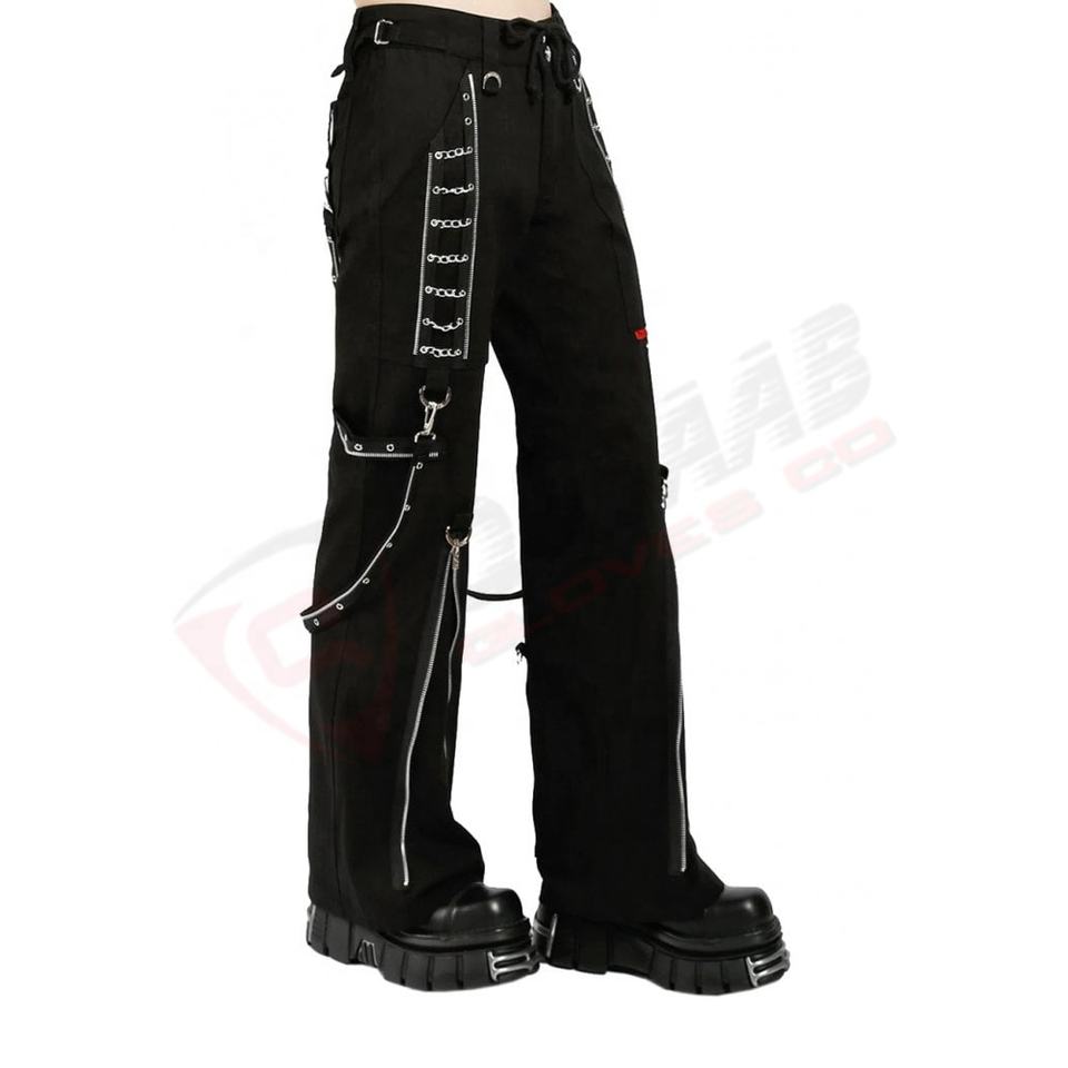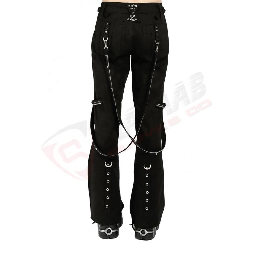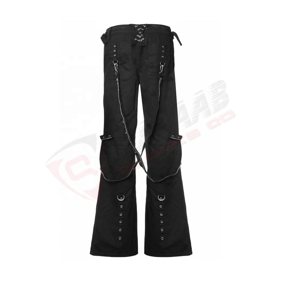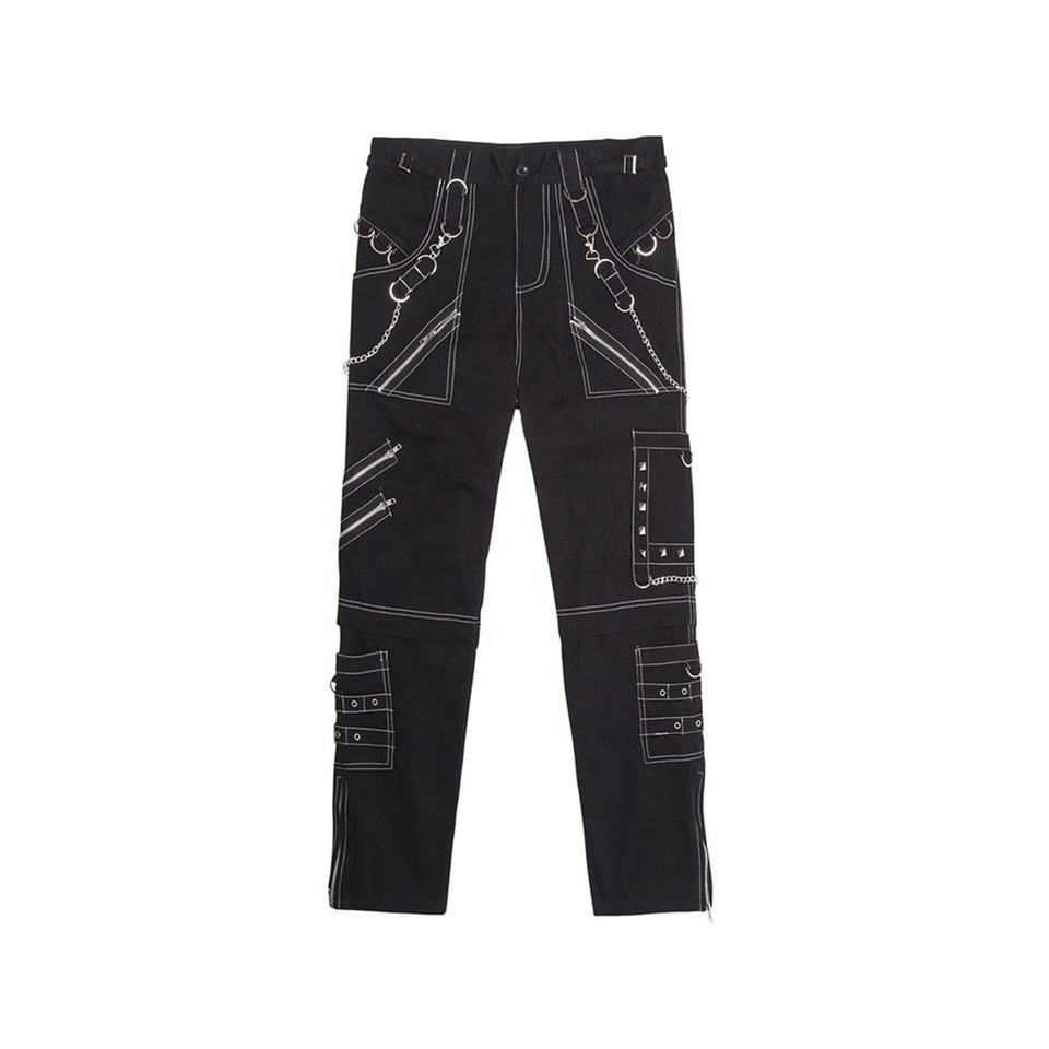 กางเกงหนังทำมือสไตล์โกธิคแฟชั่น พร้อมโซ่ตกแต่ง-สไตล์พังก์โกธิค-สีดำวินเทจ-กางเกงขายาวผ้าฝ้าย