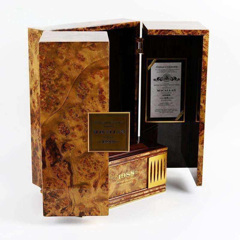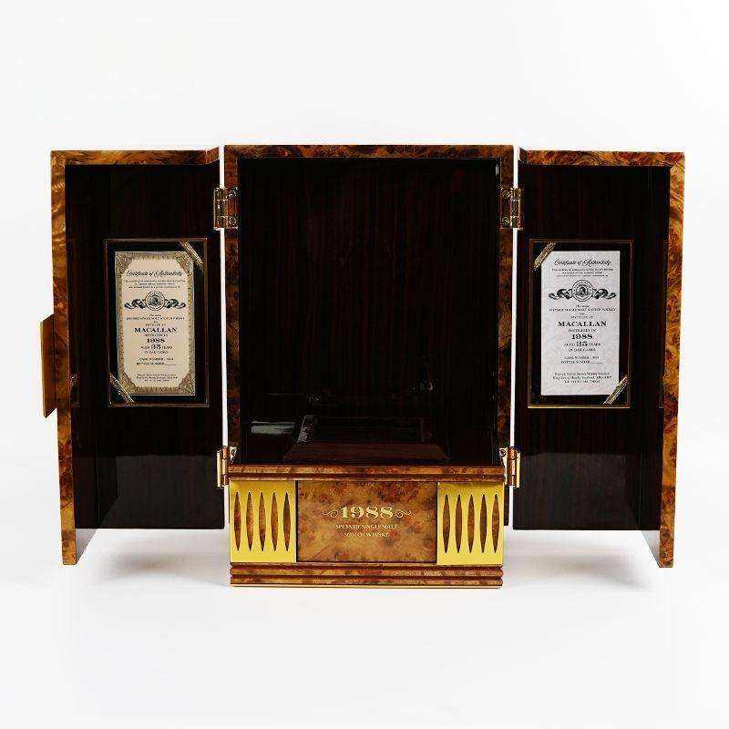 กล่องโชว์วิสกี้ วอดก้า สุรา แบบสั่งทำพิเศษ งานแฮนด์เมดสุดหรู โครงสร้าง MDF เคลือบเงาแบบเปียโน ดีไซน์สองประตู รูปทรงสี่เหลี่ยมผืนผ้า