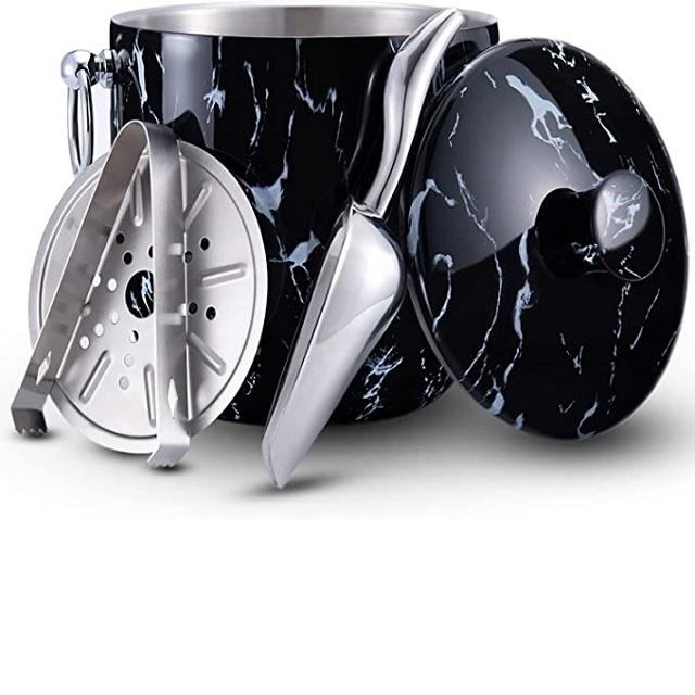 ถังน้ำแข็งโลหะสีดำทำด้วยมือ,ถังใส่น้ำแข็งสำหรับใช้ในบ้านห้องครัวขวดน้ำเครื่องดื่มแช่เย็นทำตามสั่ง