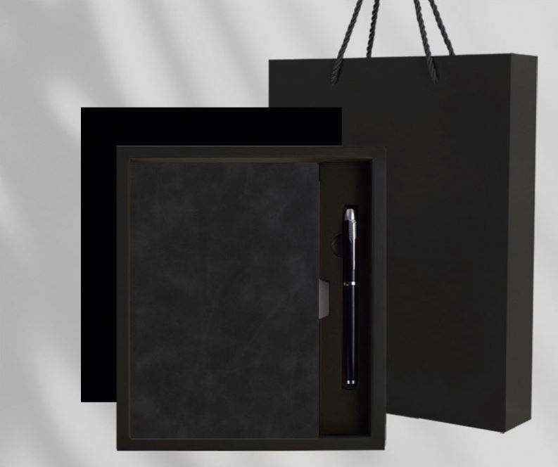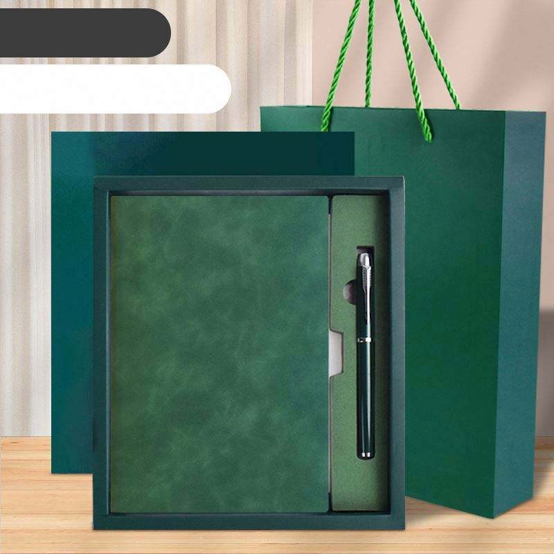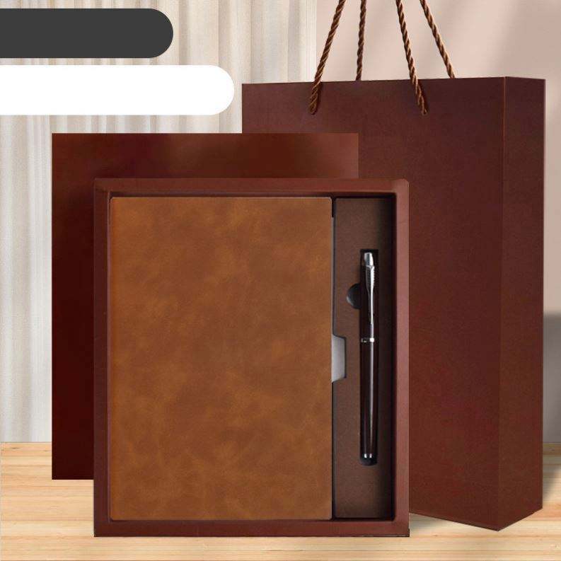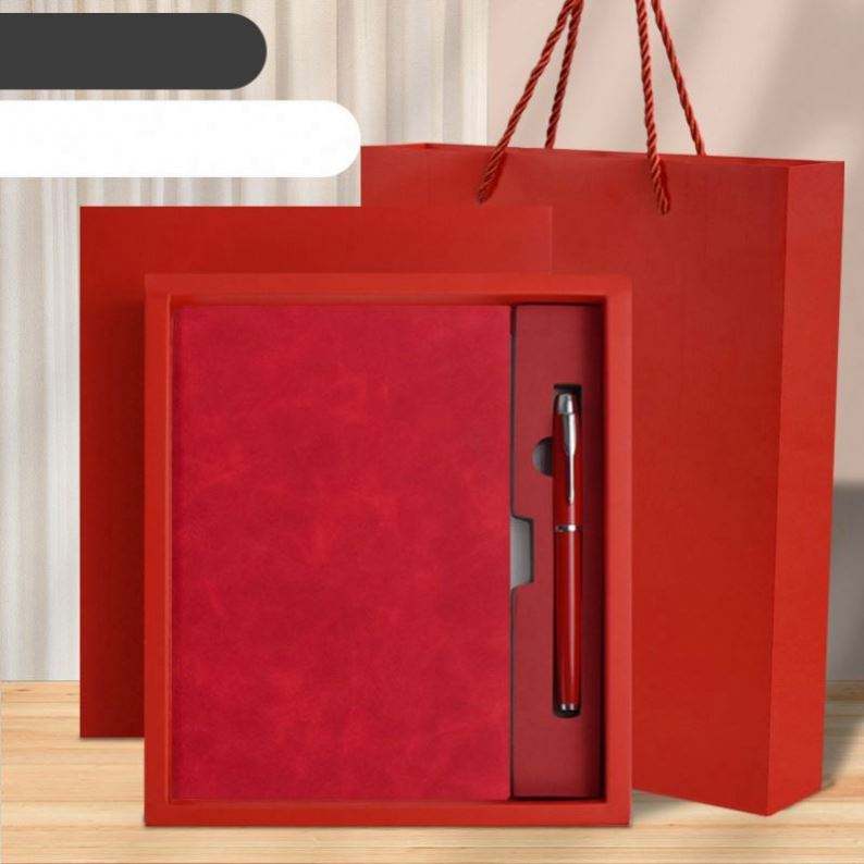 ชุดของขวัญสมุดบันทึกปกแข็งแบบกำหนดเองพร้อมปากกา สมุดปกอ่อนหนัง PU พร้อมกล่องกระดาษและถุง